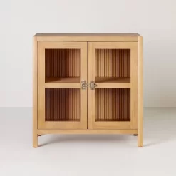 Grooved Wood With Glass 2-Door Cabinet – Natural – Hearth & Hand™ With Magnolia