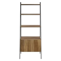 72″ Open Shelf And Closed Storage Cabinet Ladder Bookcase – Saracina Home