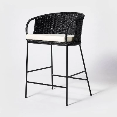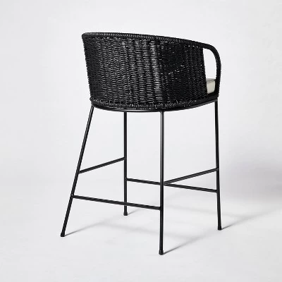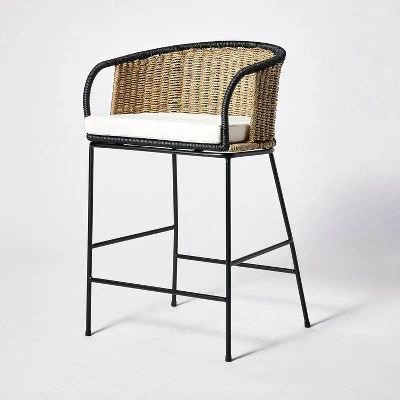 Enjoy quick weekday breakfasts and delicious Sunday brunches with family and friends on this Westcliff Seagrass Counter-Height Barstool from Threshold™ designed with Studio McGee. Featuring a sleek metal frame with a woven seagrass backrest and slightly flared legs, this counter-height stool boasts a padded seat for comfy seating. Metal braces along the bottom make a convenient footrest, while the neutral finish blends beautifully with a variety of decor styles to help you put together an inviting space.